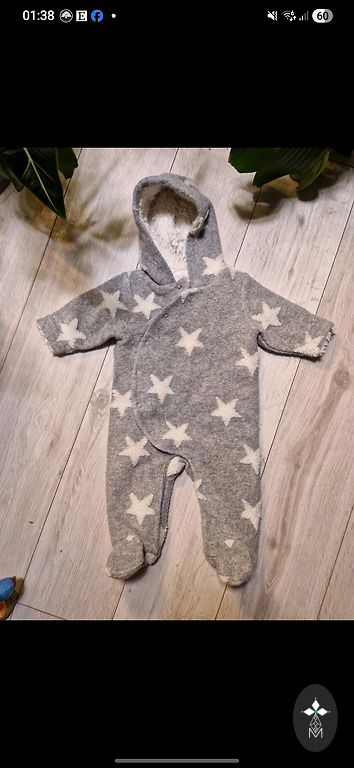 BEBE BONITO - izoliuotas kombinezonas kūdikiui. Atsargiai dėvėjo vienas vaikas. Be defektų. Yra 100% medvilnės medžiaga tiek iš vidaus, tiek iš išorės, užpildyta izoliacine paminkštinimu. Minkštas ir patogus kūdikiui užsidėti. Dėvėjome žiemos mėnesiais kaip tarpsluoksnį vežimėlio maiše, taip pat po žiemos kombinezonu + tarpsezonį kaip pagrindinį viršutinį drabužį. TAD - 100% panaudojimas!!! Dydis: nurodytas 56cm, bet tiko ilgiau.