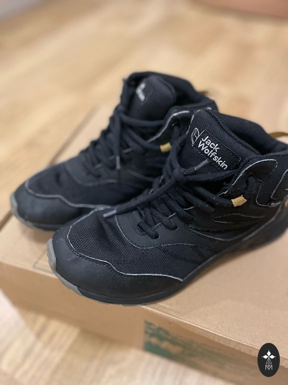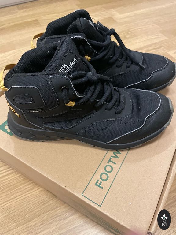 Naudoti vieną žiemą. Yra dėvėjimo požymių. Lipukai gerai atlieka savo funkciją. Vidpadžio ilgis 18 cm.
