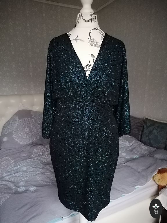 On XS - Size, chest volume without stretching is 78 cm, waist is 66 cm, hips are 76 cm without stretching, and length is 90 cm, material with glitter.