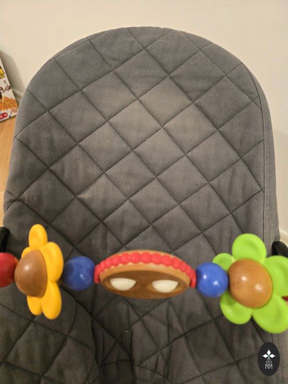 Б/у, в хорошем состоянии. Местами немного ткань выцвела (минимально), резинки, которые крепятся к раме, порвались. Игрушке нужны батарейки, мы не использовали, ребенку не понравилось, возможно, не работает.