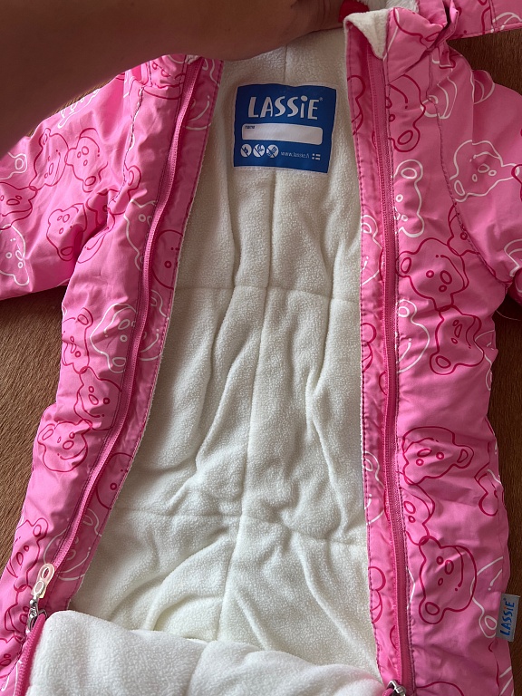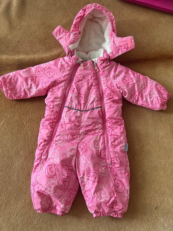Paar korda kantud kombinesoon, soe, pehme. Ilma defektideta. Käsi ja jalgu saab sisse keerata.