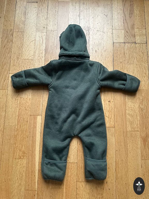 Naudojosi vienas vaikas, vieną sezoną. Labai geros būklės, yra keletas vietų su minimaliomis naudojimo žymėmis (šiek tiek kaip audinys, sėdint ant žemės nusitrynęs, bet tai matoma įsižiūrėjus). Tiksliai 110 dydžio, bet gali naudoti vaikas šiek tiek mažesnio dydžio, bus su atsarga, arba su šiltesniu apatiniu drabužiu.
