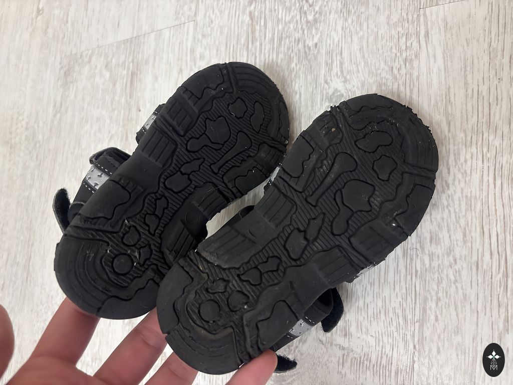 Ostetud siit, kantud vähe. Suurus 23. Viimasel fotol proovisin näidata defekti, väike kulumine tallal (laps hõõrus end vastu laua jalga).