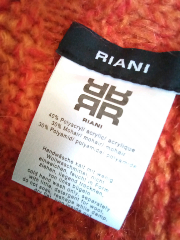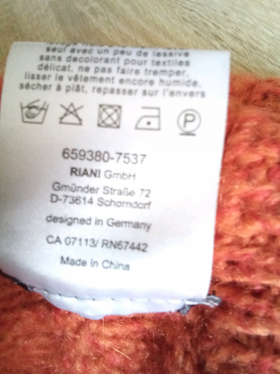 90% viskoos, 10% polüester. Kr. 2x50cm; vid. 2x50cm; pikkus 60cm. Märgistus 14 suurus, kuid ei vasta - on väiksem. M/L.