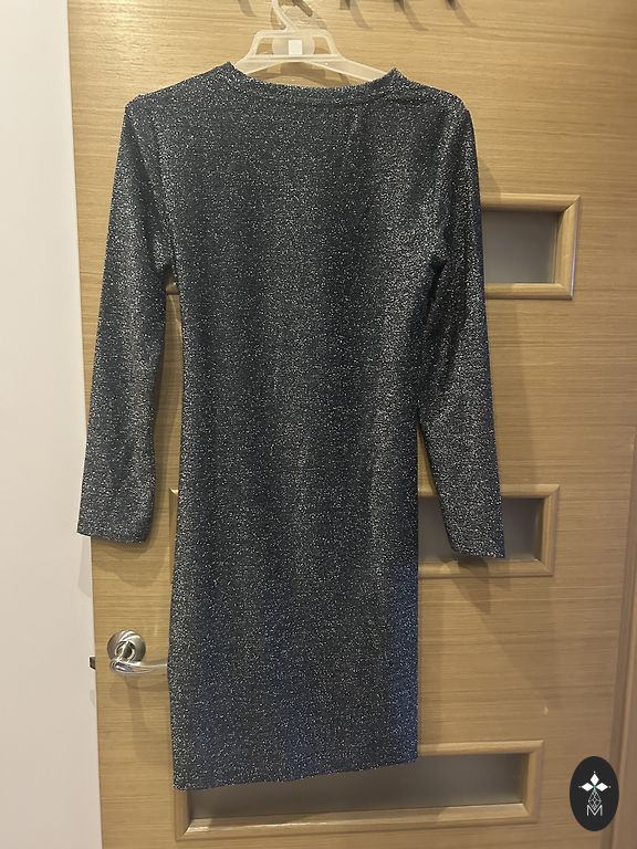 Brick-colored dress with shimmer. Material: 50% viscose, 45% polyamide, 5% elastane. Bust 70-90 cm, hips 70-100 cm, length 110 cm. Worn once.