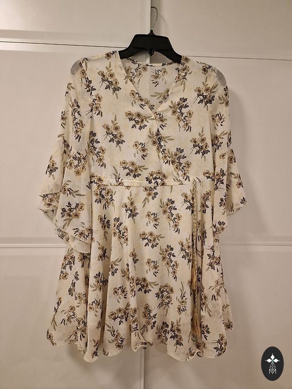 Tumši zila kleita ar maziem daudzkrāsainiem hologrāfiskiem spīdumiem, izskatās kā zvaigžņota debess. Priekšpusē melnu fliteru lente. Kleita ļoti skaisti mirgo, kad audums kustas - foto nevar pilnībā atspoguļot visu skaistumu. Pats audums ir mīksts un samtainas tekstūras. Kleita lieliski piemērota ziemas svētkiem.
