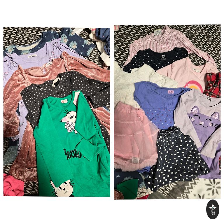 Müüme 28 ühiku komplekti, erinevad kaubamärgid. Mõni on uus, mõnel on mõni plekk. Suurused 98-110. Kandsime kõike seda umbes 104, 110.