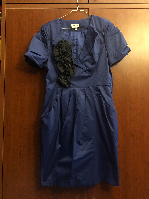 Imeline kleit pidustusteks. Kleit on valmistatud langevast, tihedast ja kortsumiskindlast materjalist ning seelikuosas on vooder. Kleidi küljeosas on tõmblukk ja sellel on mugavad varjatud taskud. Nagu tavaliselt, ei kanna me pidulikke kleite igapäevaselt, seetõttu on see kleit vaid paar korda seltskonnas kantud, mis tähendab, et selle seisukord on ideaalne.