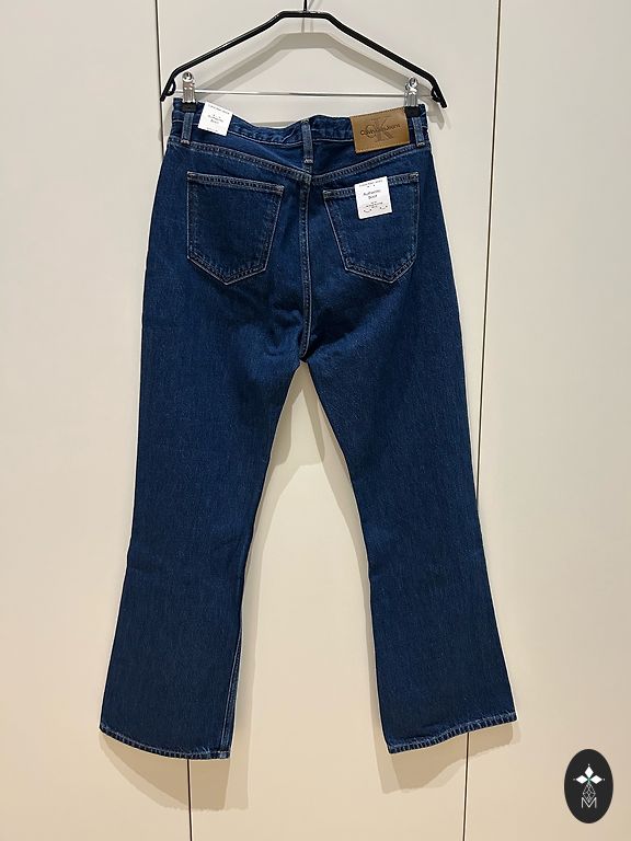 Nauji džinsai su akmenukais. Labai gražūs ir stilingi. Priekyje yra kišenės. Liemuo nuo 76 cm iki 94 cm. Klubai nuo 100 cm iki 120 cm. Ilgis 93 cm, vidinis siūlas 65 cm. Aukštas liemuo.