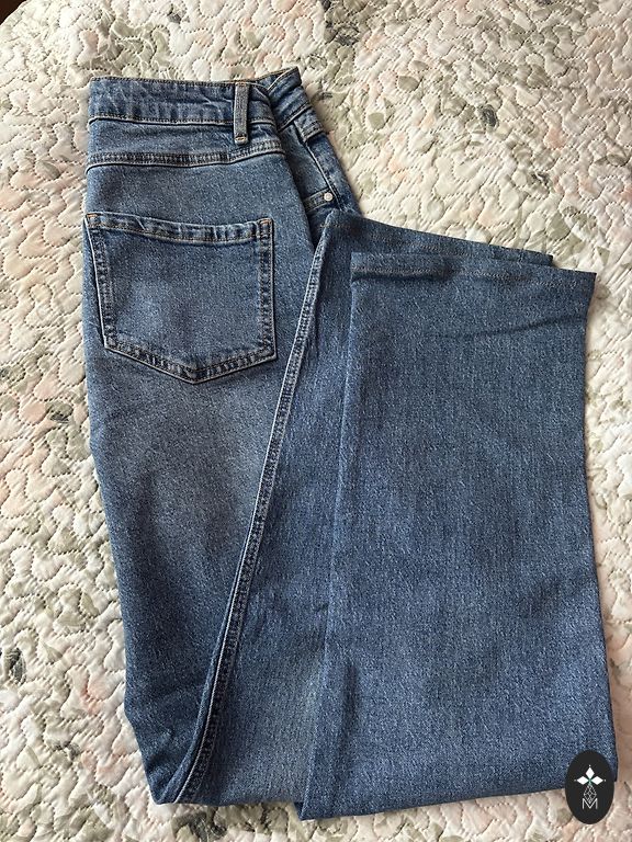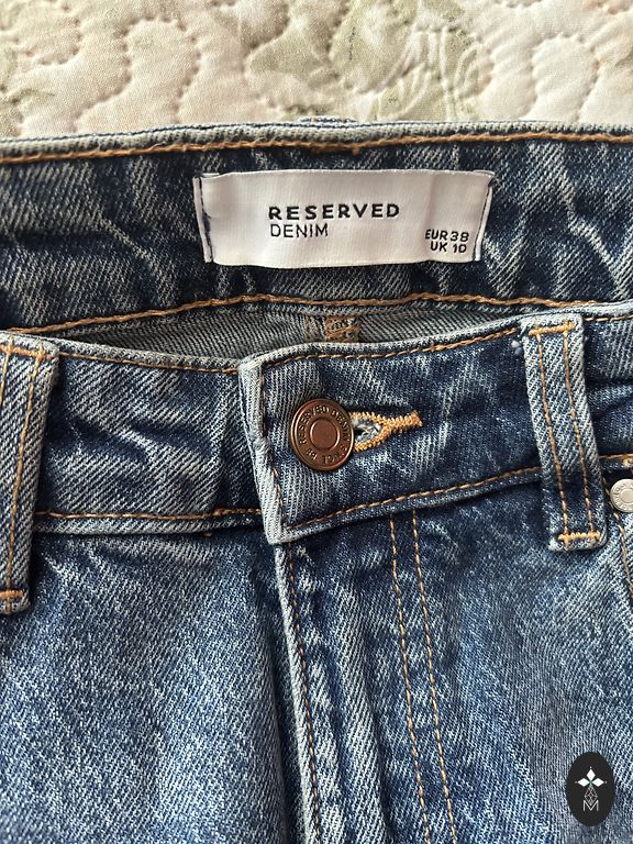Kerge läikega 34 suurus, kõrge vöökoht.