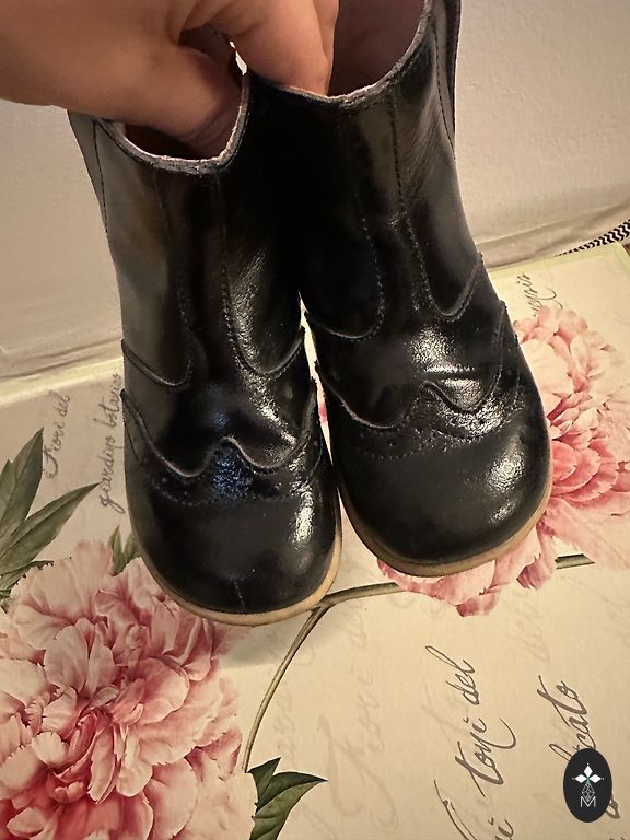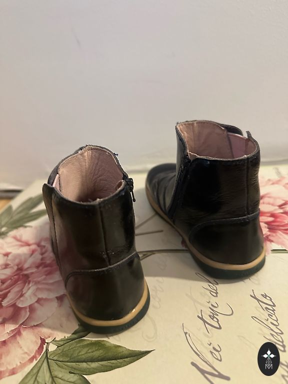 Odiniai batai su natūralia vilna, lengvi, lankstūs. Nedidelis, pataisomas defektas - nutrūkusi kaspinėlio dalis, galima priklijuoti.