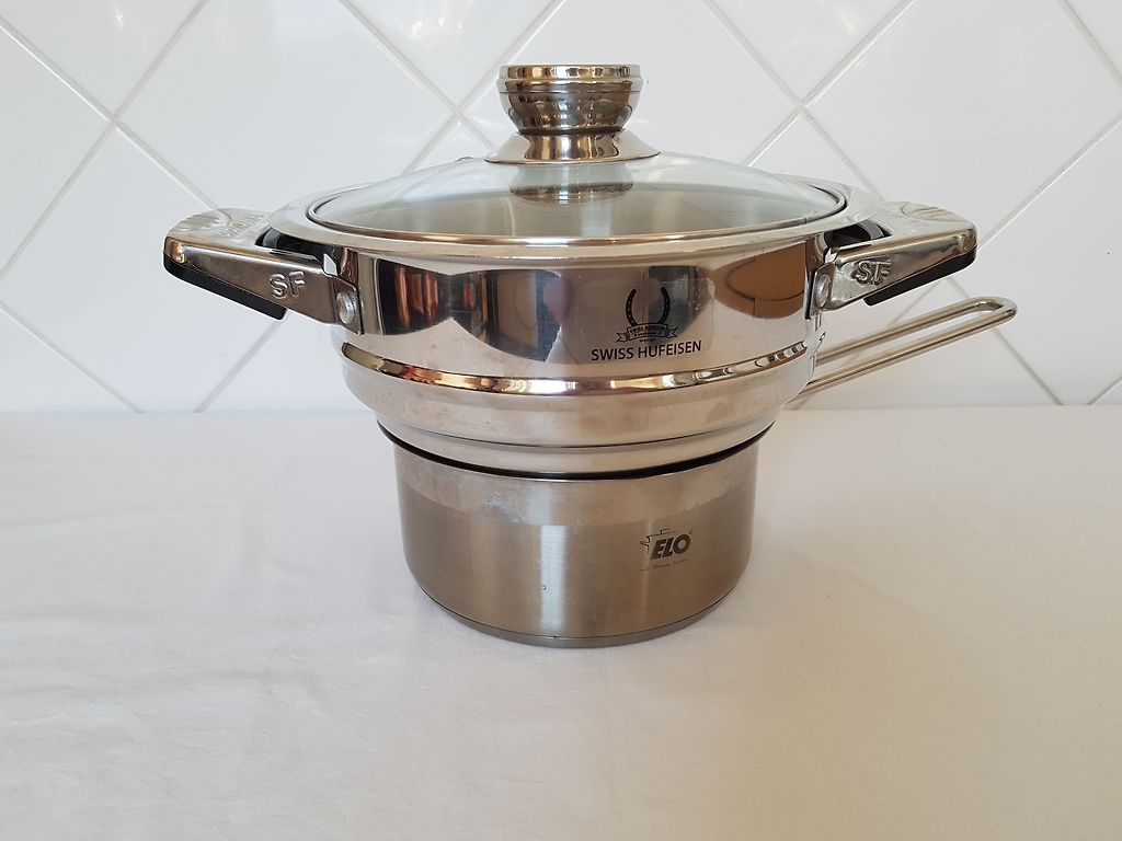 Roostevabast terasest pann tri-ply konstruktsiooniga ja pika käepidemega.