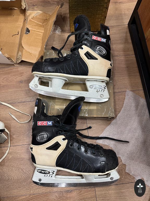 Коньки CCM, очень удобные, с подкладкой внутри. Удобная шнуровка за крючками + липучка для сбора шнурков.