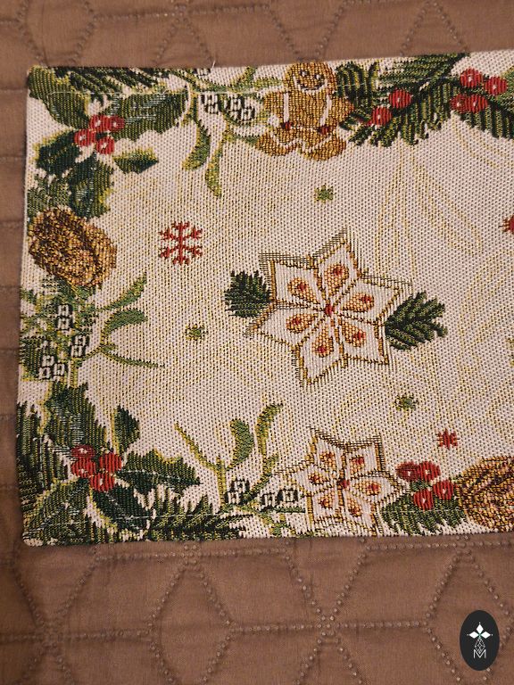 The tablecloth is new. There is a manufacturing defect in the seam finish, but it does not spoil the overall impression. This tablecloth will be an interesting decoration for your home before Christmas. Size: 85*85 cm. Delivery via parcel terminal (paid by the buyer) or in person in Ziepniekkalns.