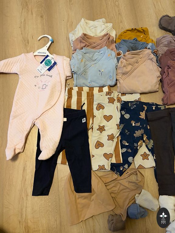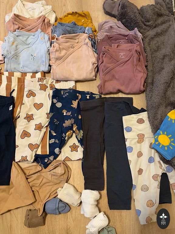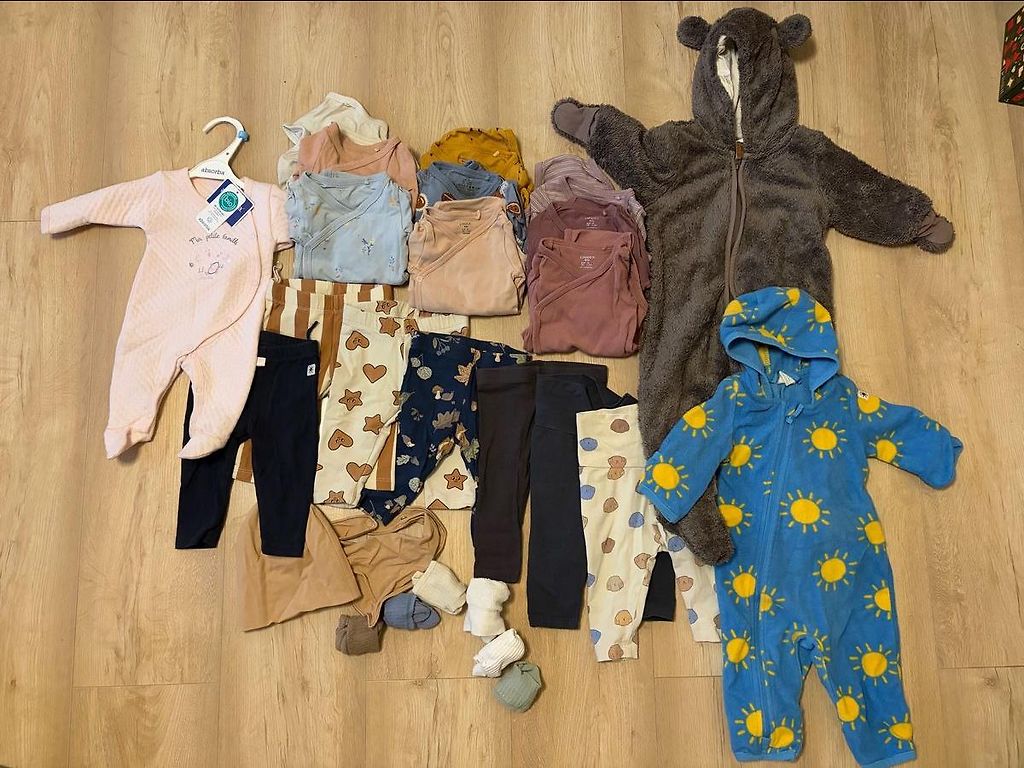 Various manufacturers' bodysuits, 9 pieces - NEXT, George, Primark, etc. All are in very good condition, without defects. Mostly, all bodysuits are labeled size 74. One bodysuit is marked 62/68 and one is 74/80. All can be worn in sizes 68-74. Shipping is not included in the price.