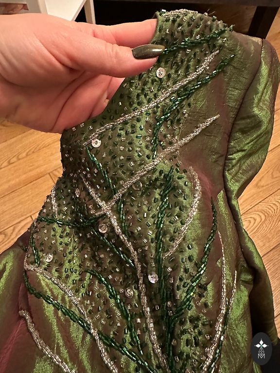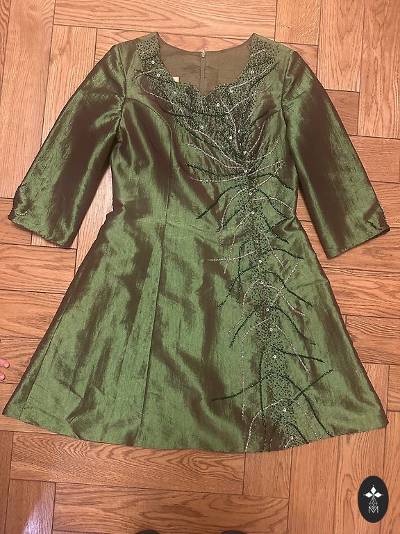 Interesanta un skaista kleita tumši zaļā krāsā.