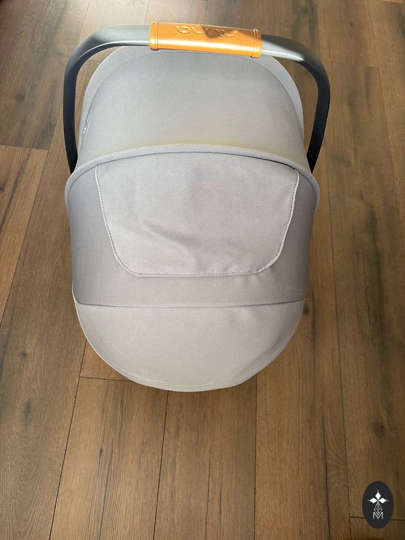 - bērnu no saules, vēja un lietus pasargā regulējama augšdaļa, kas nav jāstiprina pie roktura