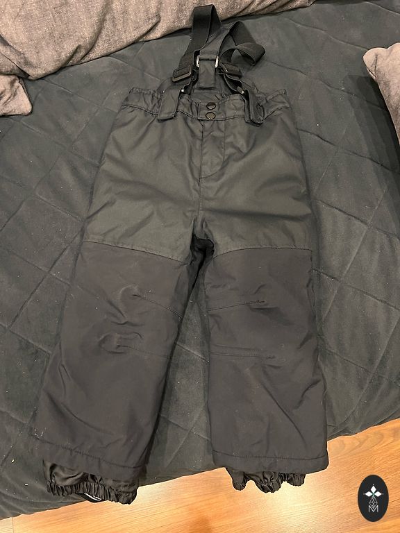 Reguliuojamos petnešos, guminiai batai, reguliuojami kelnių galai, atspindintys elementai. Dėvėti ir dėvėti. Tikėjausi, kad mums dar tiks šią žiemą, bet mes labai išaugome.