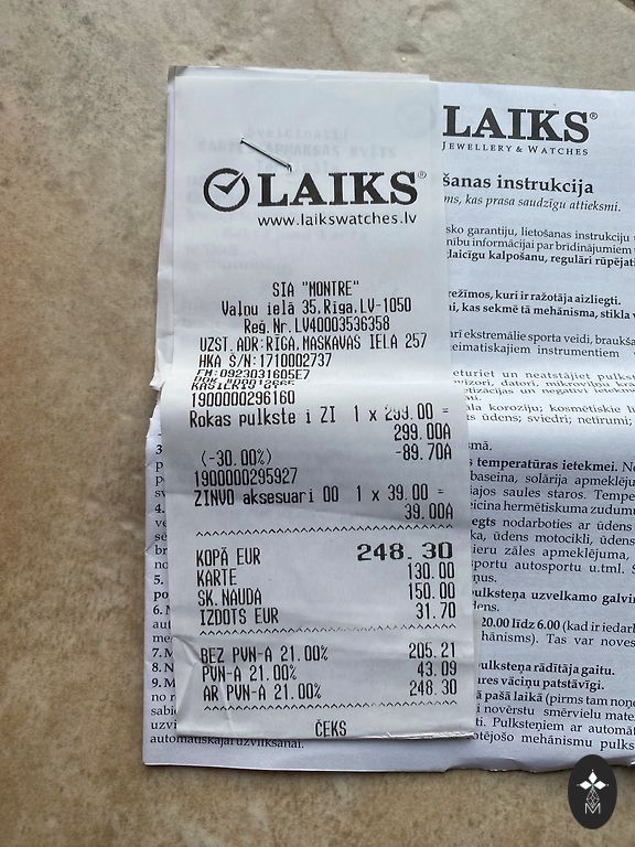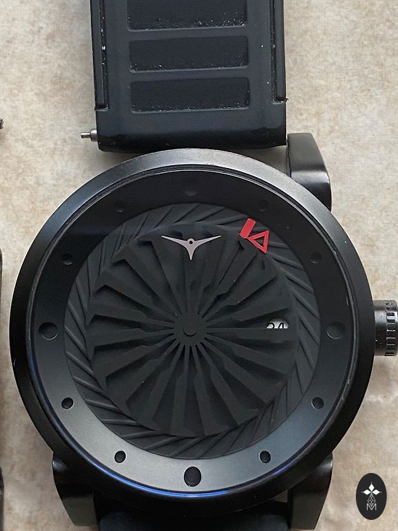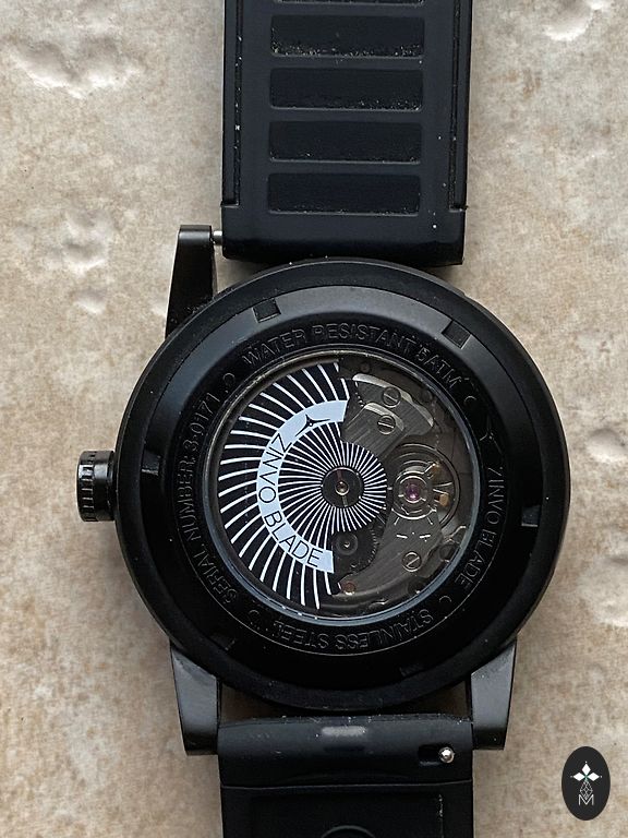 Meeste käekell sekundiosutajaga. Kolm väikest sihverplaati kella keskel on dekoratiivsed ja mitte tõelised. Kella läbimõõt on umbes 4,5 cm.