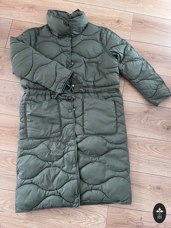 Nusipirkau, buvo parašyta kaip nauja, iš esmės atrodo kaip nauja, tik yra defektas, matosi nuotraukoje, bet jį galima gerai pataisyti, man patinka, bet kai užsidėjau, atrodė, kad tinka, bet užsegiau vis dėlto per maža, nes man daugiau 42 dydis, defektas ant rankovės.