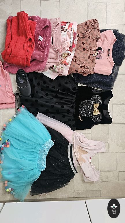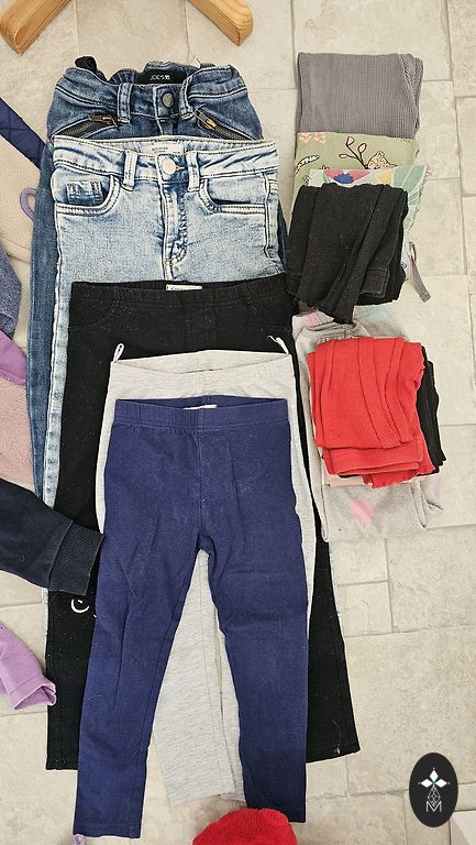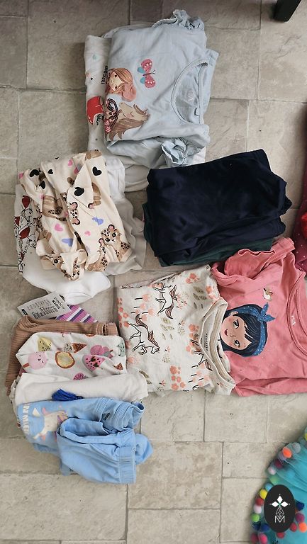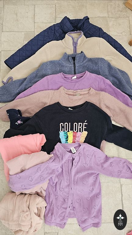 Kõik 110. suuruses Sinsay, Pepco, H&M. Ilma plekkide ja aukudeta. Mõnel riidel pole enam nii ere värv.