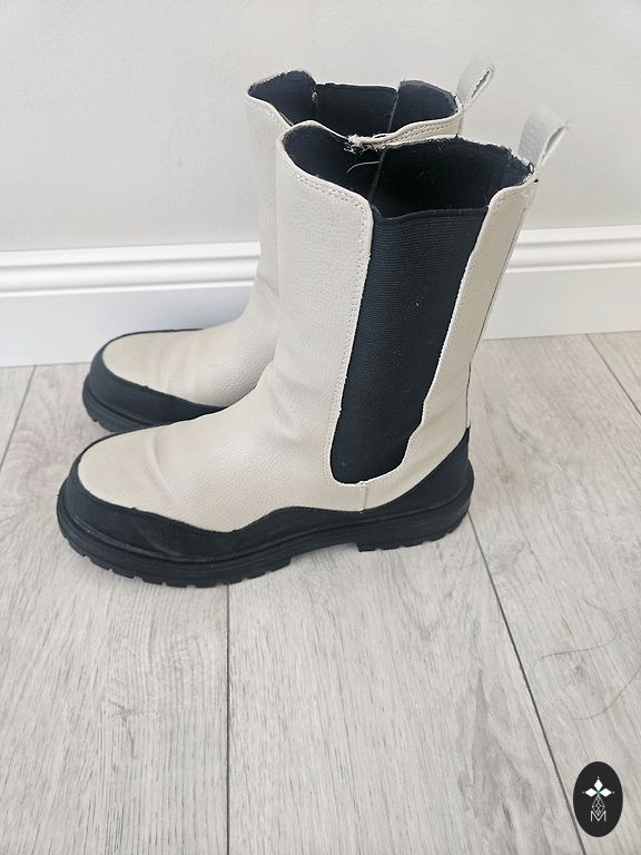 Ботинки Graceland для относительно теплых зимних дней, осени, весны. Есть небольшая утеплёнка. Застёжка на молнии. Немного сбитые носки, но в целом ботинки хорошие. Размер: 36, длина стельки 23 см.