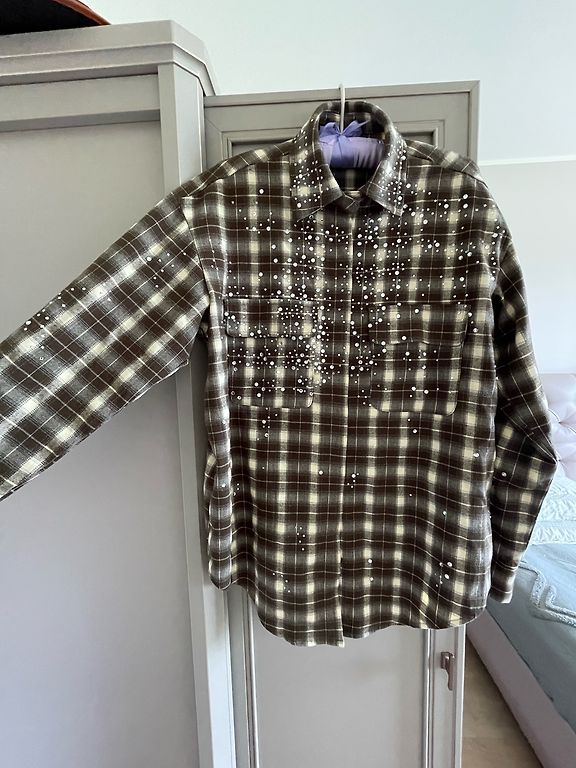Unisex klasikiniai marškiniai, pasiskolinti iš džentelmeno garderobo, dėvėti 1 kartą, asimetriškai užsegami, skirti kaip oversize. Tačiau per dideli, todėl įtraukiami į šventinį pasiūlymą. Kaklaraištis iliustracijai, nėra komplekte. Minimalistės elegancijai:)
