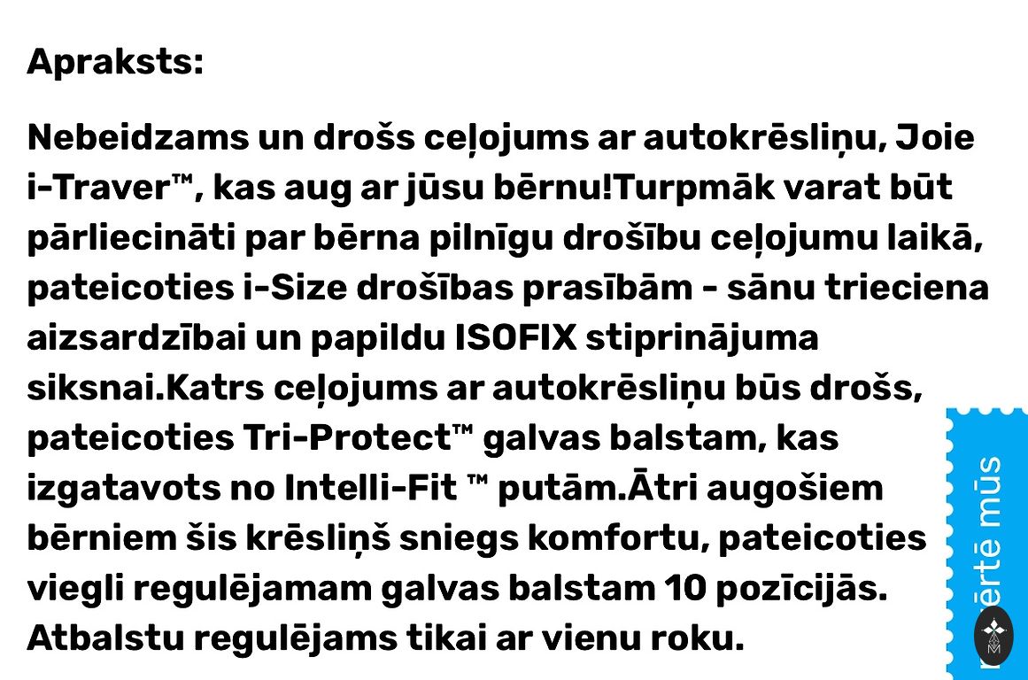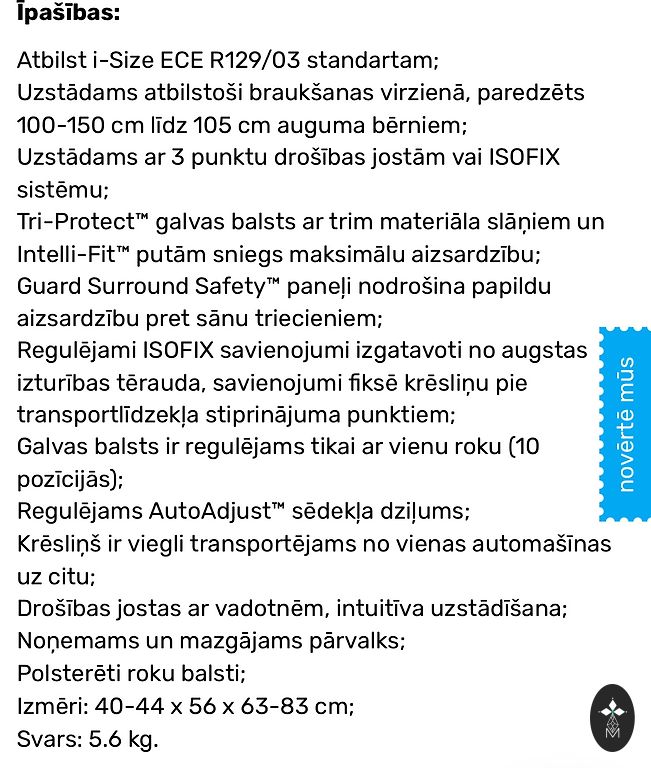 Selling a child car seat 15–36 kg (group 2/3), ECE R44/04.