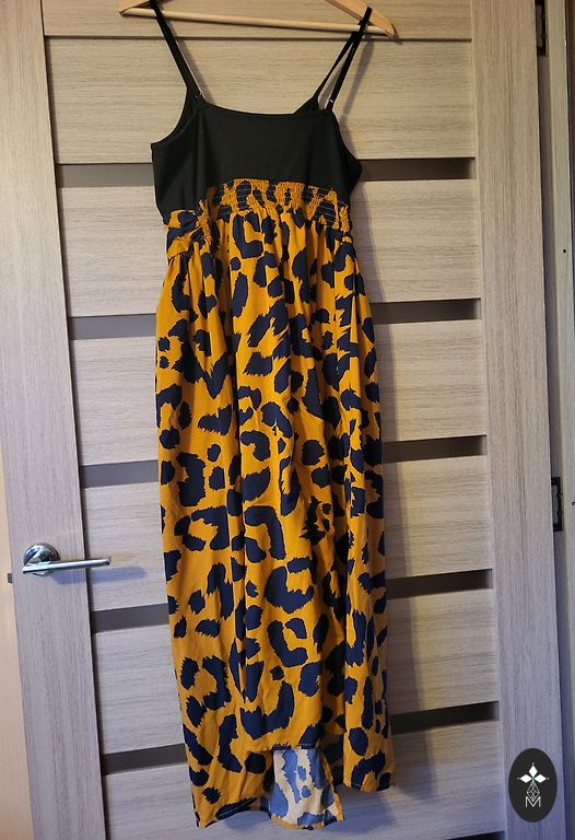 Elurõõmus, lilleline kleit. Sobib suurepäraselt tumedama nahaga naistele, sest mahlane kollane värv paistab hästi silma naha pruunikal toonil. Vöökoht 37cm, rind 44cm. Kohaletoimetamise kulud katab ostja.