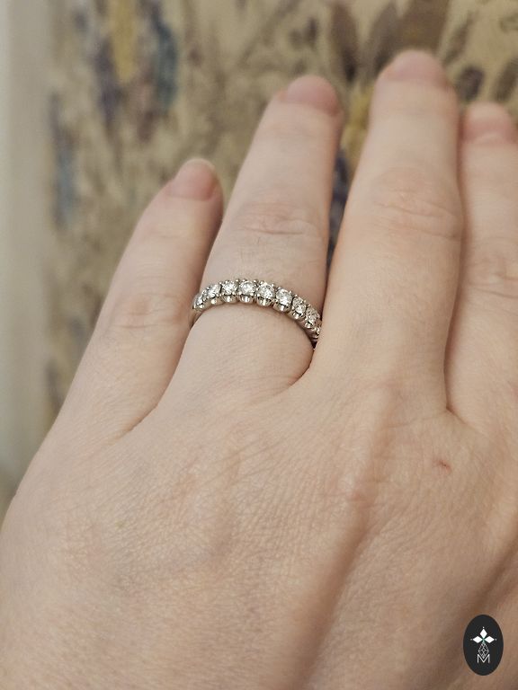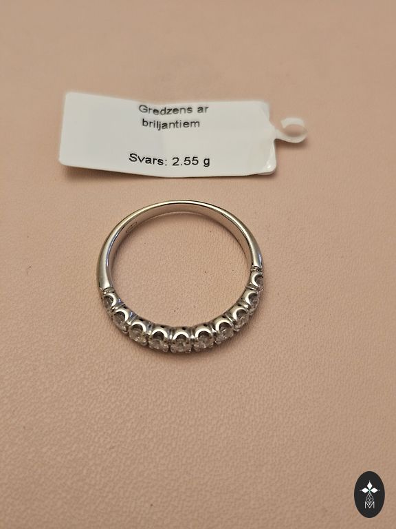 Kuld 585, looduslikud briljandid 0.14 ct, 2 sünteetilist safiiri. Kaal 3.88 gr.