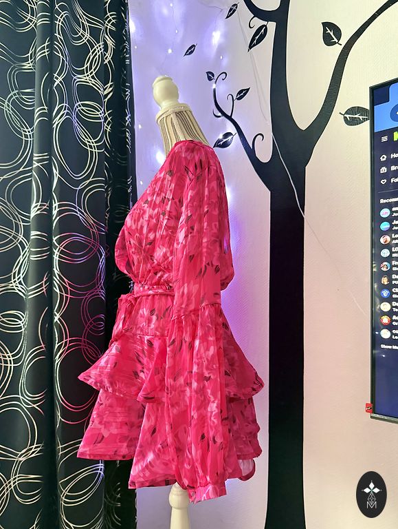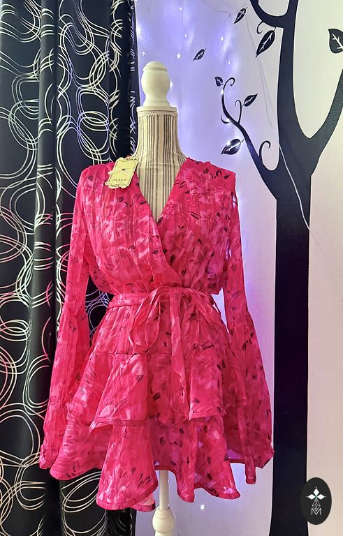 Suknelė buvo nupirkta, bet nepavyko nė karto niekur apsivilkti, ir dabar jau nebesivilksiu, jei per metus nė karto neapsivilkau. Labai gražios rankovės ir sijonas. Diržą galima rišti tiek priekyje, tiek gale. Dydis S, bet tiks ir M!
