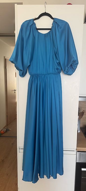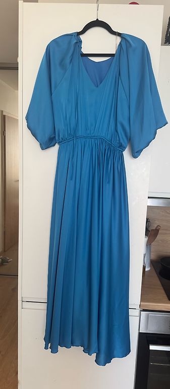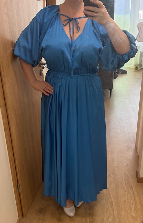 Moderni, rudos spalvos, ilga suknelė iš Italijos, su pamušalu, rankovės permatomos, šonuose skeltukas. Ilgis 128 cm, rankovės 58 cm, klubai 112 cm, krūtinė 110 cm. Galima dėvėti su diržu arba be jo. (Diržas nepridedamas). Nenešiota, nauja. 20 eurų + siuntimas.