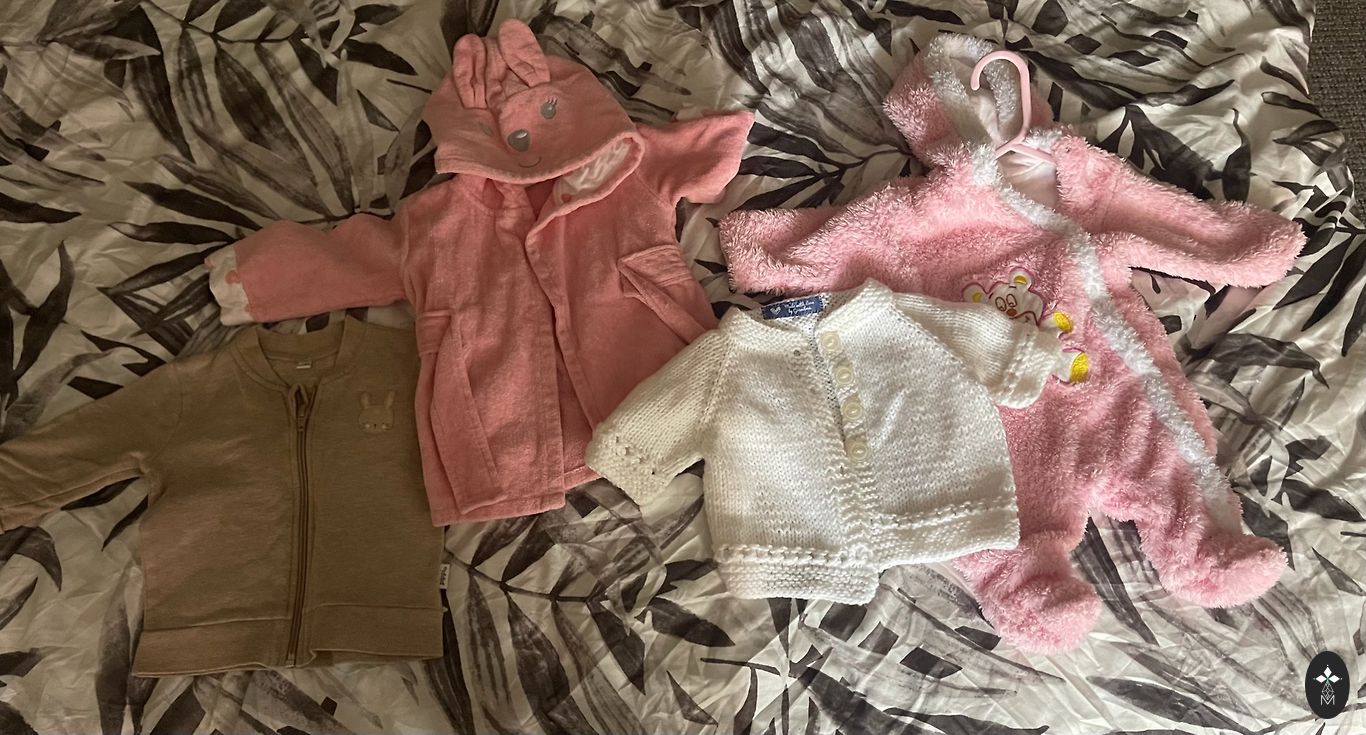 Vācu firmas komplekts sastāv: bodi, krekliņš ar garam piedurknēm, rāpulīši, lakatiņš. Audumu sastāvs 95% kokvilna, 5% elastāns. Iepakots kastīte. Lieliska dāvana. Piegādes izmaksas sedz pircējs.