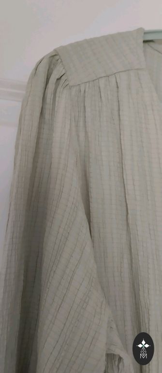 Платье из тюля с подкладкой, подкладка без рукавов. Манжеты и воротник акцентированы трикотажной отделкой. Свободный, прямой крой. Надето один раз. Длина 110 см, под мышками 55...56 см x2.