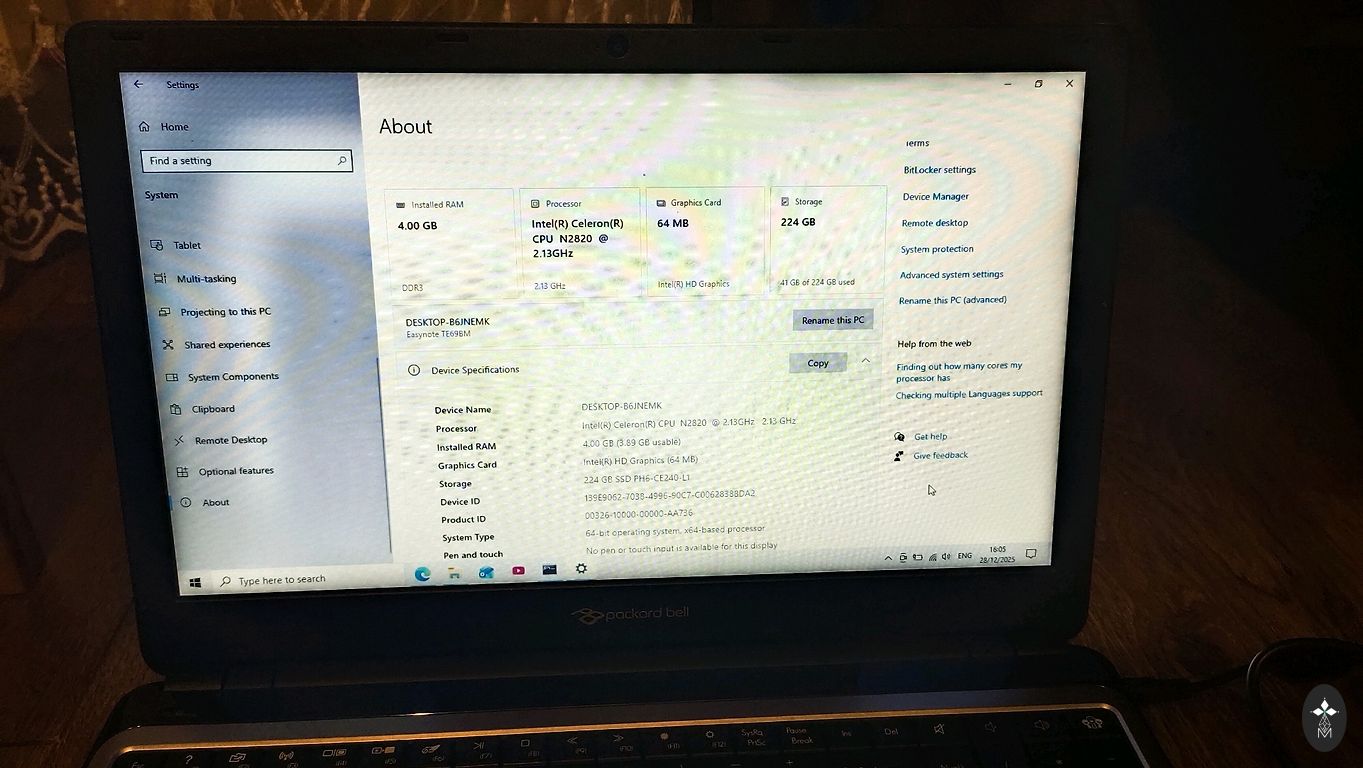 Short description - the computer is ~9 years old, it stood unused for the last 3 years because the battery and charger were dead, I replaced the