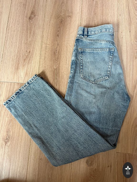 Müüa Levis kõrge vöökohaga mom jean rebenditega. Suurus 28. Välisõmbluse pikkus 95cm, sisesääre pikkus 65cm. Koostises 1% elastaani. 15€ + saatmine