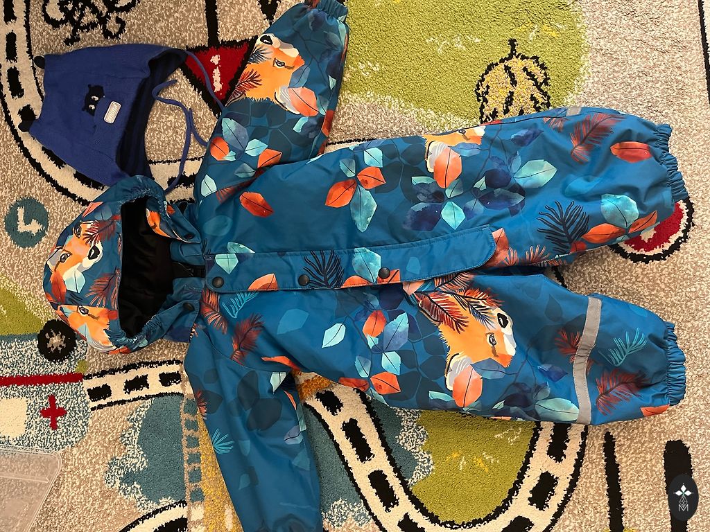 Minymo winter overalls in excellent condition. Removable fur on the hood. Reflectors. Beautiful material with ribbing.