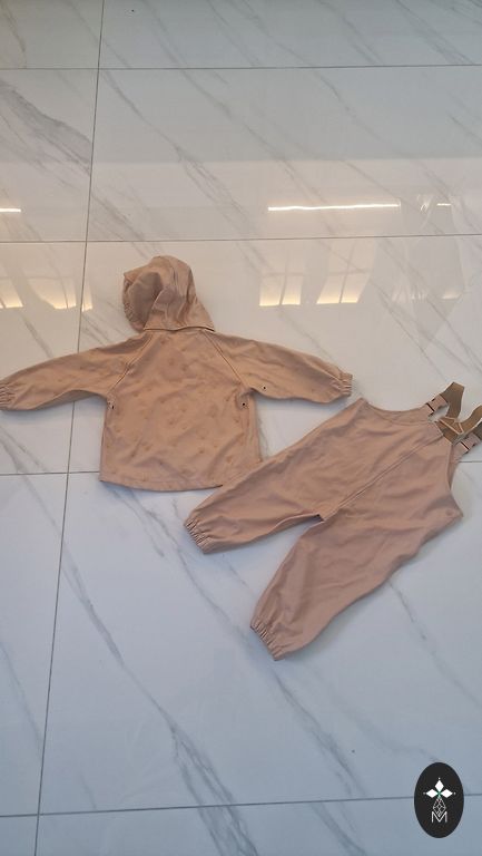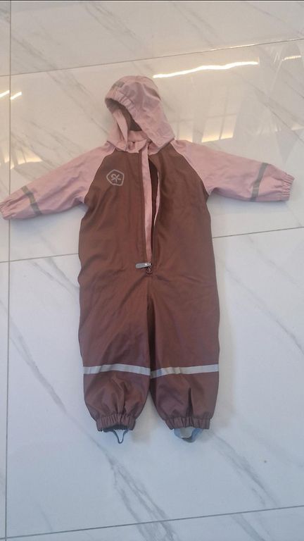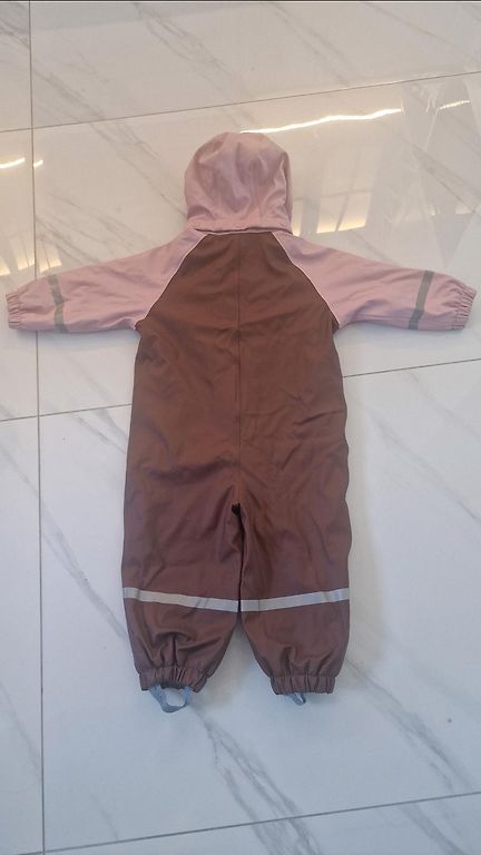 В очень хорошем состоянии (размеры видны на фото). Легкий межсезонный комбинезон - для более теплых весенних и осенних дней 👌 Нет резинок, но есть места для крепления резинок - подойдут любые стандартные резинки для комбинезона.