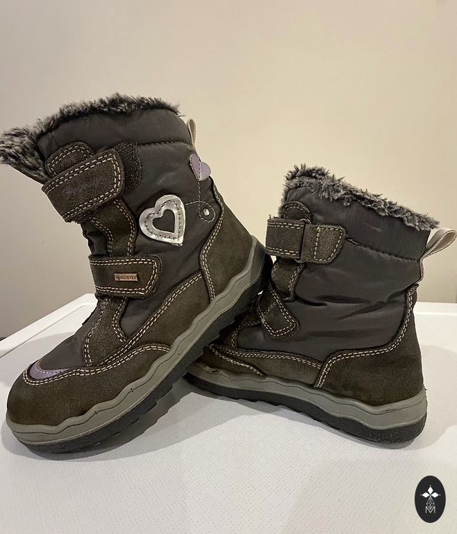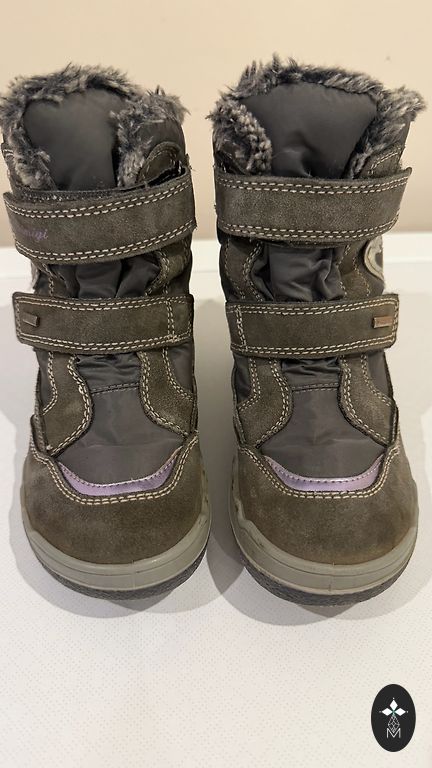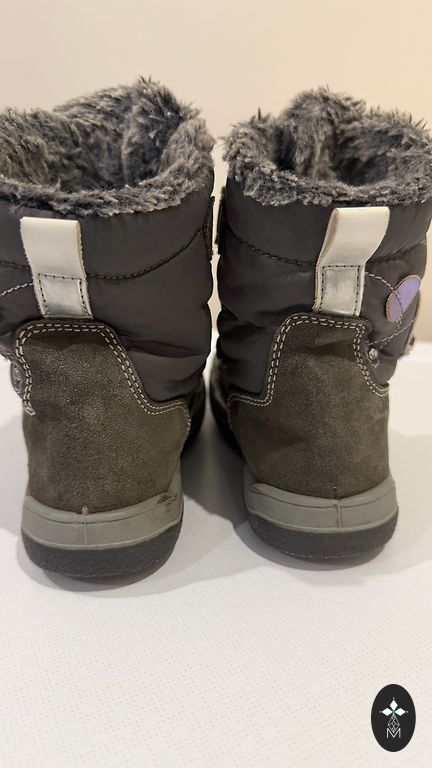 Without defects, insole length 20 cm. The Velcro sticks perfectly, one boot has visible lining wear/fuzzing at the top edge (see photo).