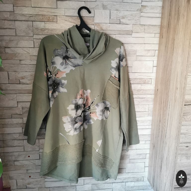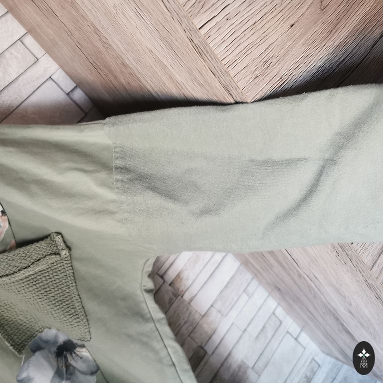 Medžiaga: 50% medvilnė, 50% poliesteris. Ilgis 77 cm. Krūtinė apie 140 cm.