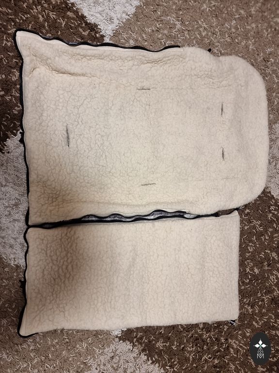 Black stroller sleeping bag, minor imperfections...a few bumps peeling off the base (visible in the picture), which rubbed against the stroller back. All zippers work on the bag, it can be fully opened like a blanket. I will give a Zaffiro ring sling along with it.