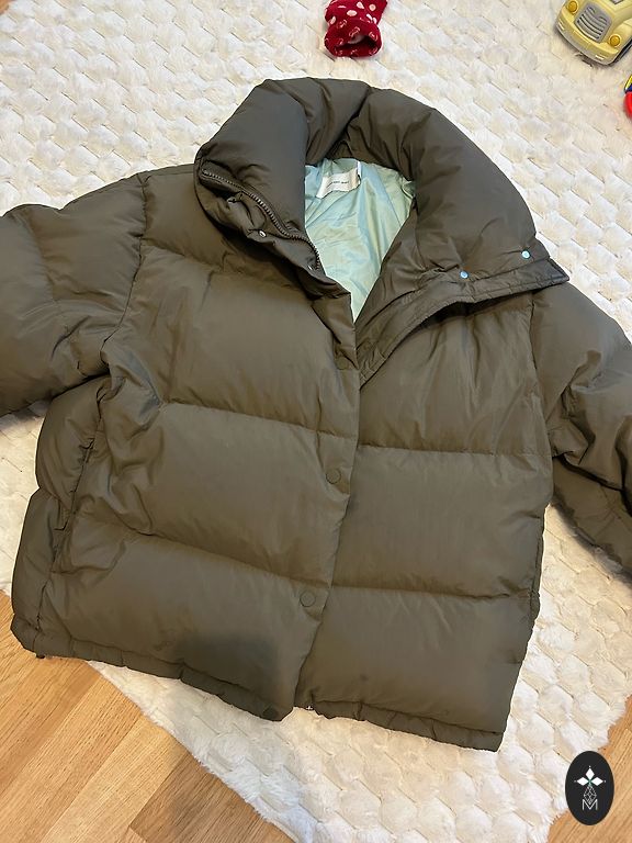 Excellent Uniqlo down coat in khaki color (color changes/reflections in the pictures are misleading). Size S, but also fits a small M size. Uniqlo brand - it is a special quality of outerwear, practicality, thanks to Japanese technology.