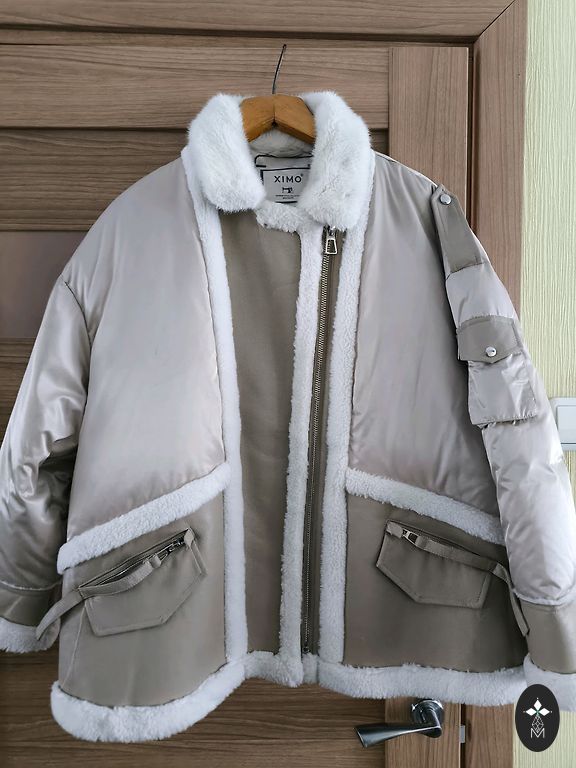 Väga ilus talvine meeleolu jope suurus 54, kergesti pestav pesumasinas, pikkus 64 cm, rinnaümbermõõt 60x2, varrukas 57 cm. Sobib nii L kui ka XL.