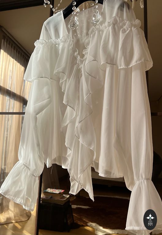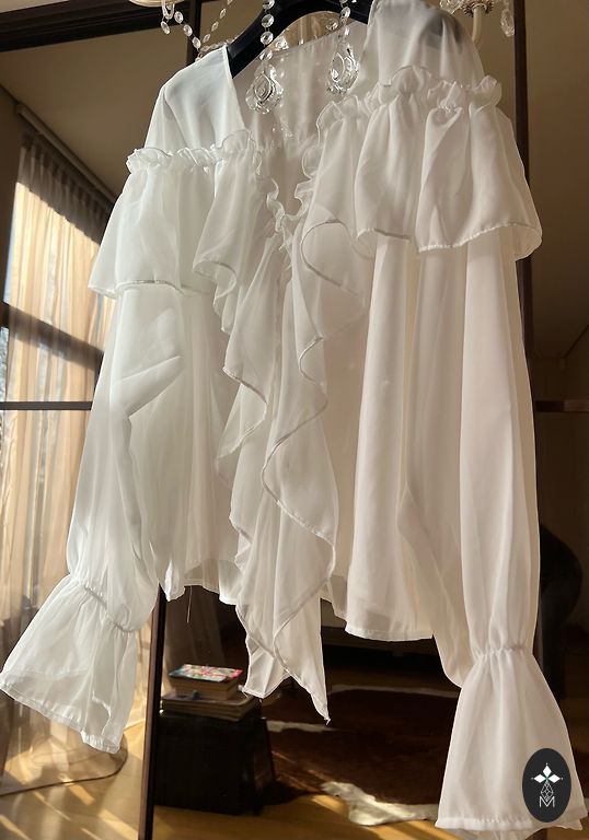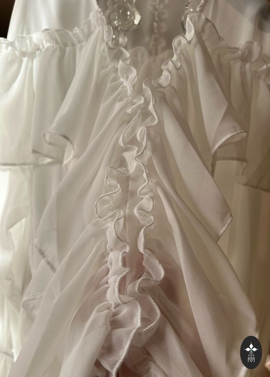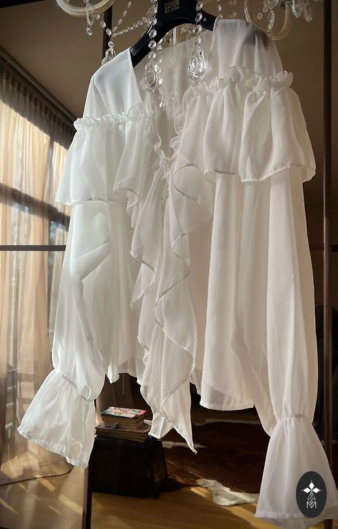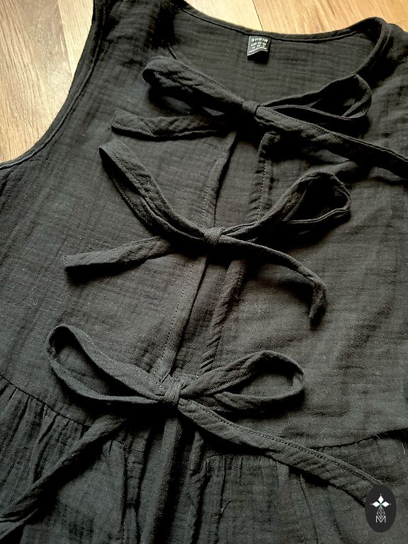 Selline M suurus, ma ütleksin. All on puuvillane trikookangas vooder ja peal on pluus. Küljel on seotav pael. Valge, kantud 1x. Mõlemad kokku 8.00eur.