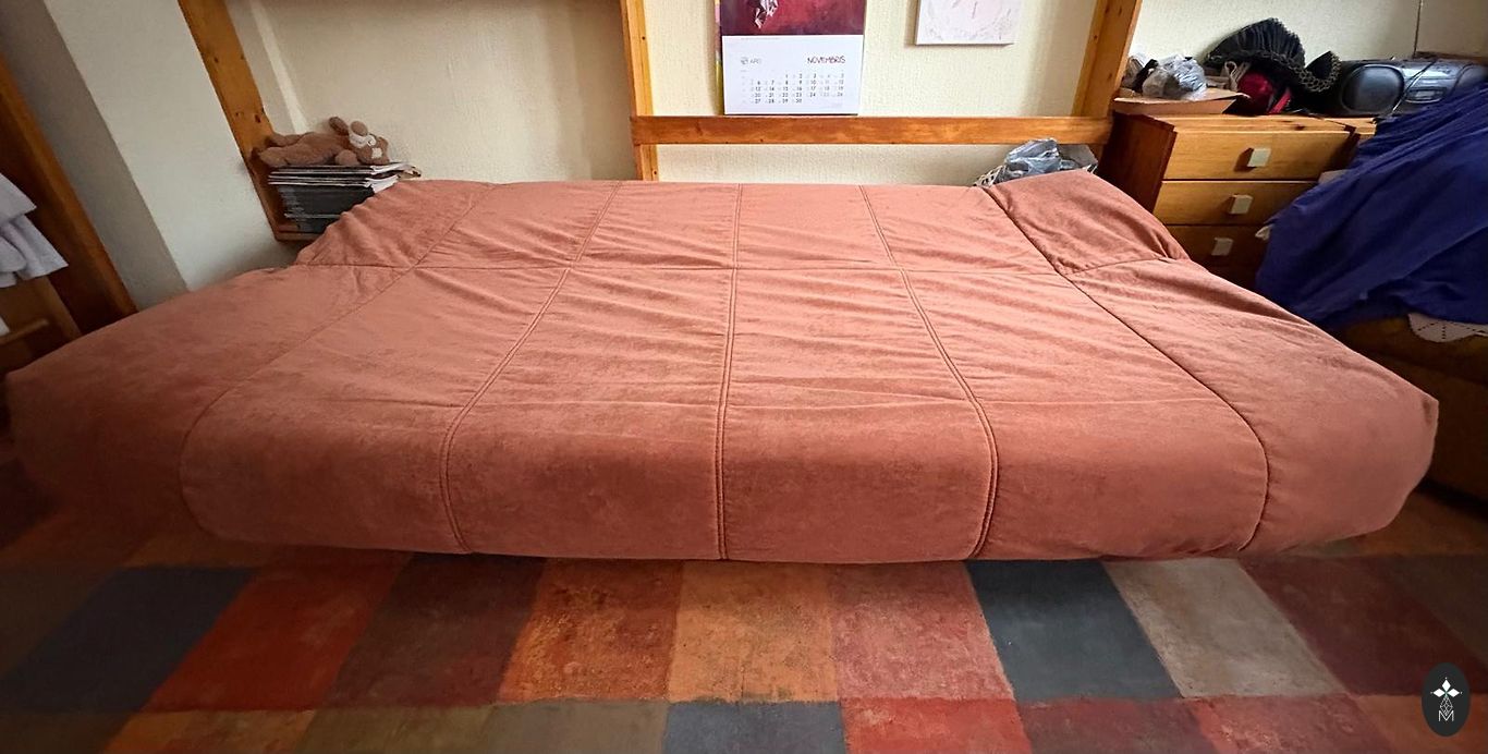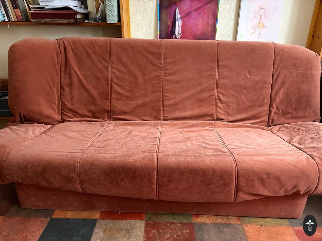 Kokkupandav diivan koos pesukastiga väga heas seisukorras. Kasutati voodina, pealismadratsiga. On väikesed muljumised kahes kohas, kus ülemine osa toetus alusele. Diivani pikkus 195 cm, laius kokkupandud kujul 95 cm, magamiskoht 145x195 cm.