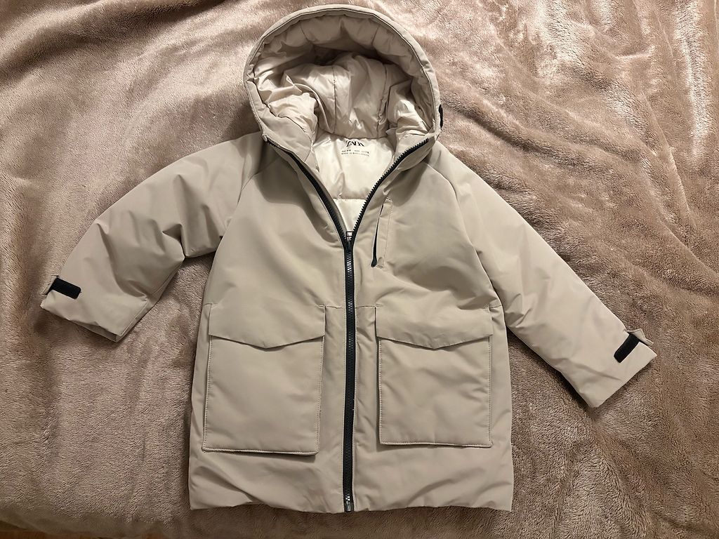 Kaunis beež Zara jakk, esiküljel on väike defekt, lõng on lahti tõmmatud, mis on näha pildil, suurus 80.