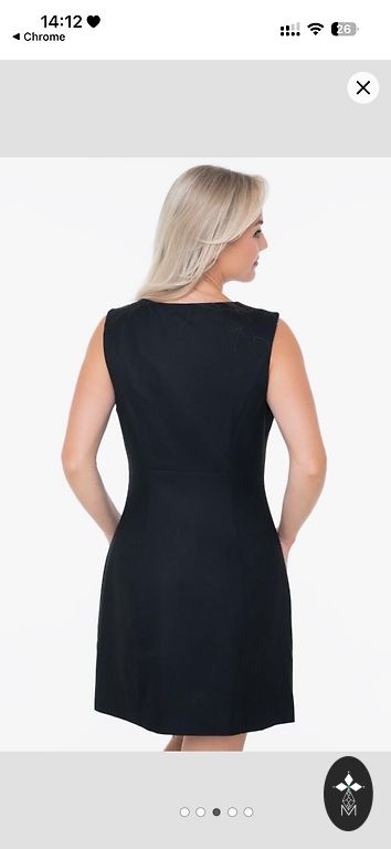 Taisna kleita, elastīga. Garums - 116 cm, platums krūtīs - 41,5 cm. Aizmugurē rāvējslēdzis. 57% viskoze, 41% neilons un 2% elastāns.