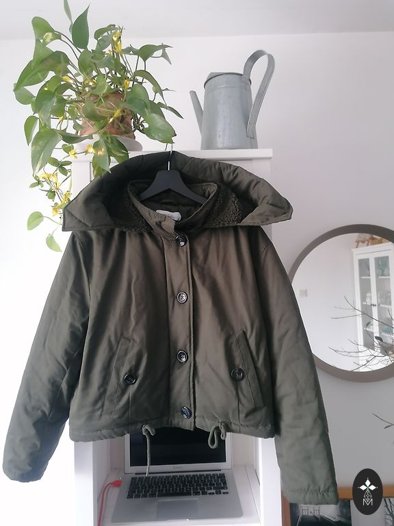 Vero Moda kaubamärgi talveparka, millel on veidi pikem seljaosa, sellel on lukuga ja trukkidega kinnitus ning taskud asuvad nii külgedel kui ka rinnal. Kapuutsi karvase osa saab eemaldada, parka sees on pingutusnöör vöökoha reguleerimiseks. Puuduvad defektid, müün, sest osteti teine mudel.