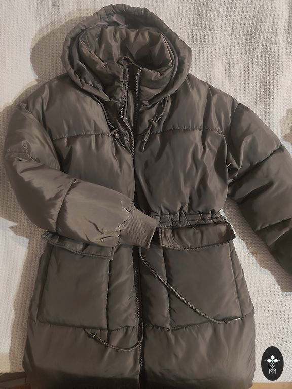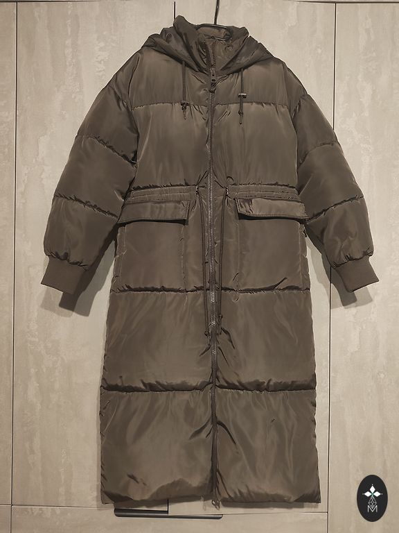 Oversized style coat in taupe color. Length 106 cm. Composition: 13% wool.