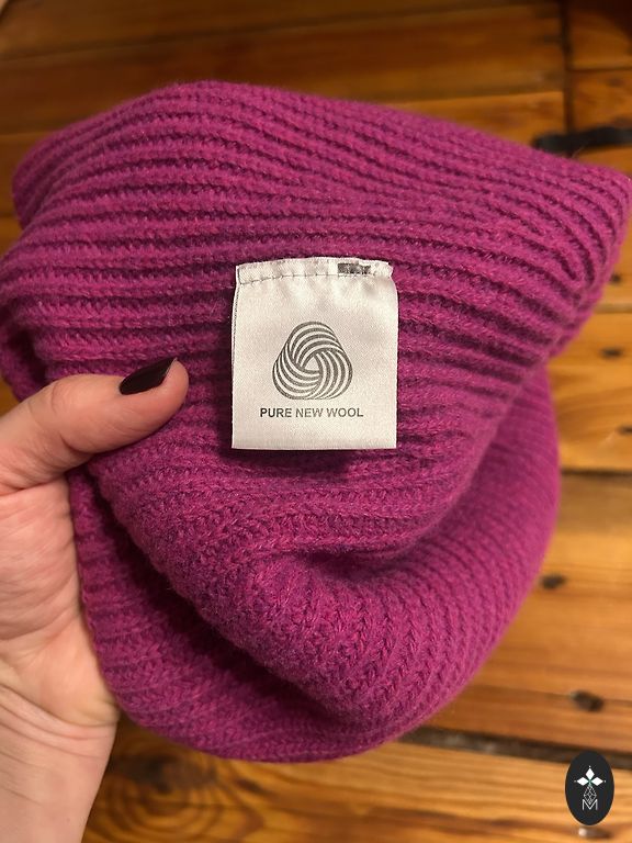 100% wool, therefore warm... covers ears well.